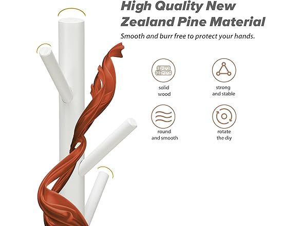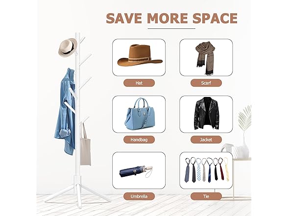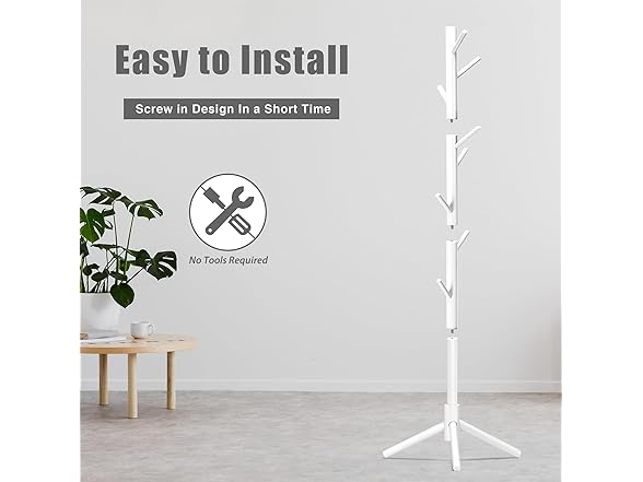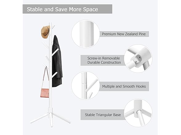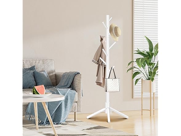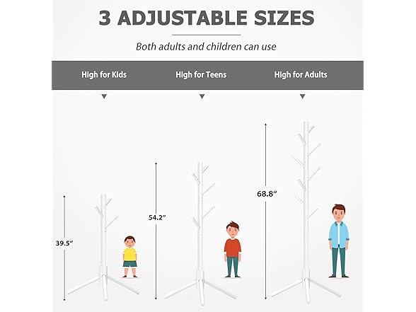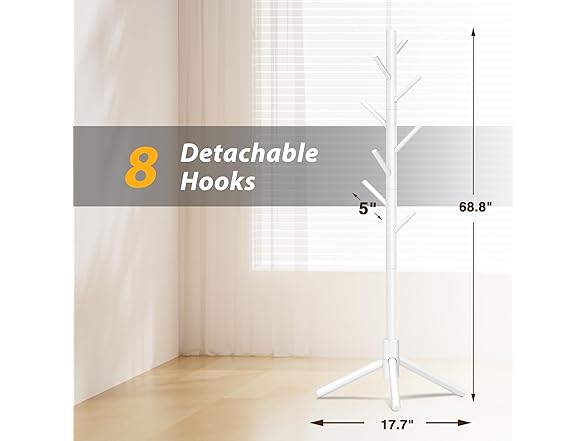 Free Standing Coat Rack with 8 Hooks 3 Adjustable Heights