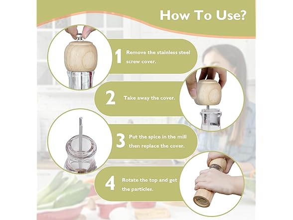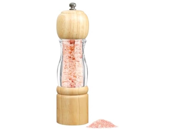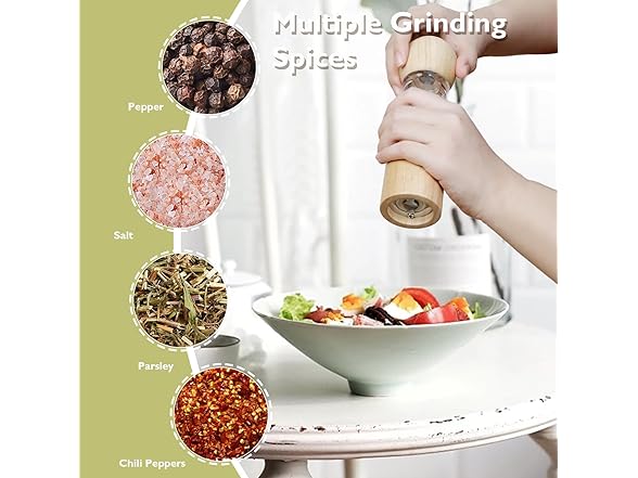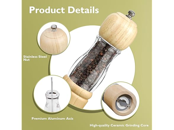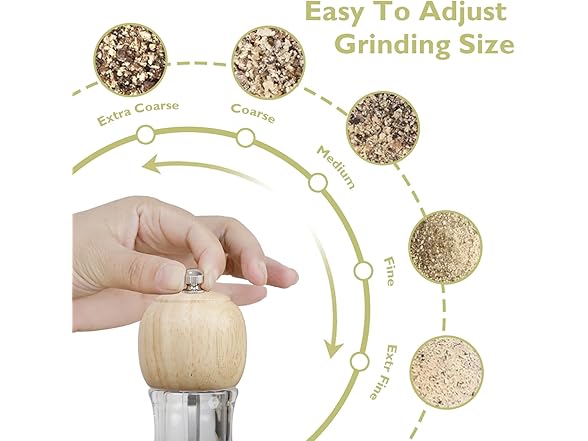 Wooden Salt and Pepper Grinder Set, 8.5 Inches Salt Grinder with Adjustable Coarseness Pepper Mill, Refillable Manual Salt Grinder, Oak Wood Salt and Pepper Grinder Mill Set for Kitchen