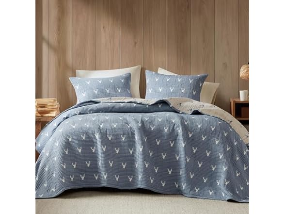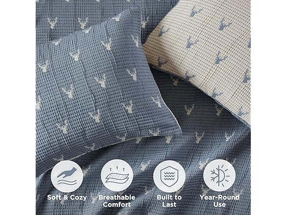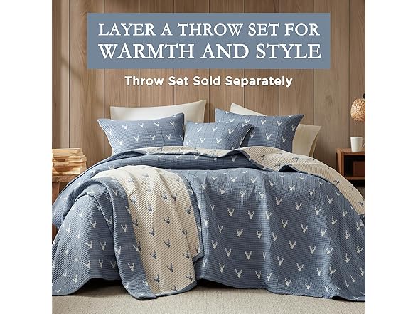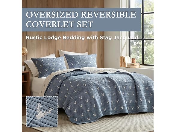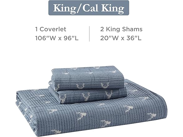 Woolrich John Rich & Bros. Woolrich Coverlet Set Rustic Lodge Design, 3 Piece Set All Season, Lightweight Reversible Farmhouse Bedspread Bedding, Shams, King/Cal King, Blue