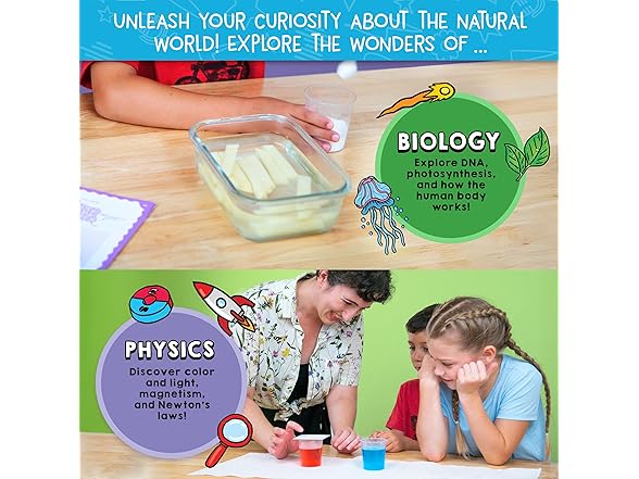 - JAM-PACKED WITH FUN SCIENCE LEARNING: This comprehensive kit dives into the world of science through 100 exciting, jaw-dropping experiments that explore essential topics in chemistry, biology, physics, and earth science. Accessible for kids as young as 6!