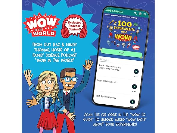 - EXCLUSIVE AUDIO CONTENT: The #1 family science podcast “Wow in the World” hosts Guy Raz & Mindy Thomas join you & your family on this bonkerballs adventure through the wonders of science! Audio “Wow Facts” await you, accessible only within the pages of the “Wow-To Guide!”