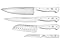 - ASIAN CHEF'S KNIFE SET - Includes 3" Serrated Paring Knife, 5" Hollow-Edge Santoku, 6" Utility Knife and 6" Chef's Knife