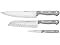WÜSTHOF GOURMET SERIES – 8" Chef's Knife, 7" Santoku and 3" Spear Point Paring Knife with synthetic polypropylene handles that resist fading, discoloration, heat and impact. Precisely laser-cut stamped knives offer superb quality and value
