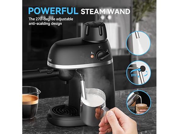 - Adjustable Steam Wand: The powerful, adjustable steam wand effortlessly creates smooth, dense milk froth, making you a home barista for cappuccinos and lattes. Features a heat-resistant short tube for safe operation, easy cleaning, and includes a red pin to unclog the wand when needed