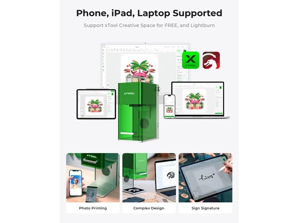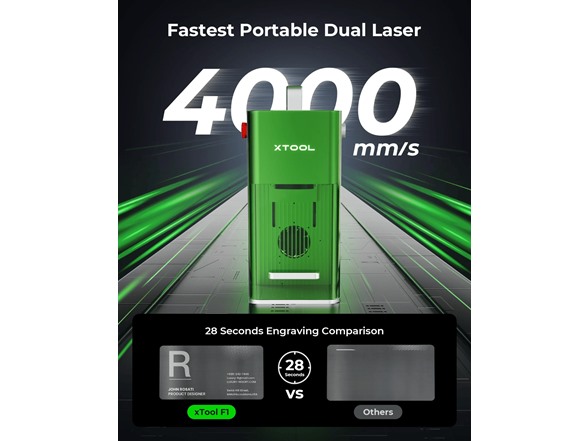 The xTool F1 Portable Laser Engraver is the world’s first laser engraver to integrate a 10W diode laser with a 2W infrared (IR) laser into one compact and portable machine. Designed for high‑speed engraving with a maximum speed of 4000 mm/s, the F1 delivers ultra‑fast, high‑precision results on a wide variety of materials, making it ideal for hobbyists, makers, small business owners, and on‑site engraving projects. With features such as live preview, auto/manual focus, and a fully enclosed safety design, F1 combines performance, convenience, and versatility in one powerful laser engraving solution.
