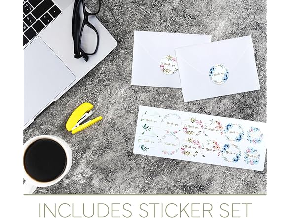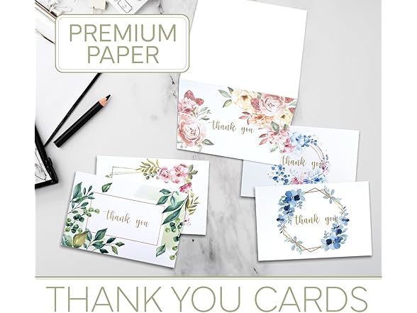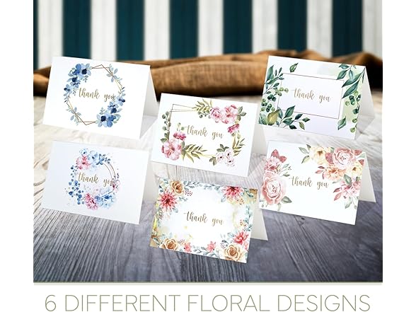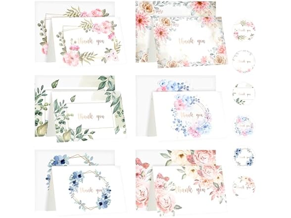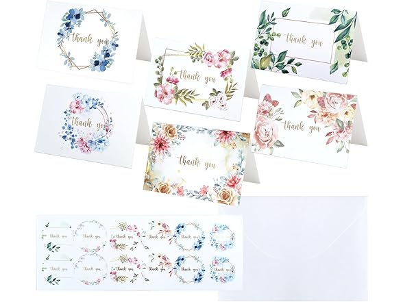 yei-yei 36 pieces of THANK YOU CARDS with Envelopes and Stickers, Made of Sturdy Papes with Assorted Color Floral Designs, for Weddings, Birthdays, Christenings and Special Gifts.