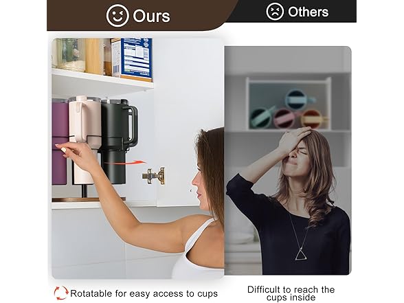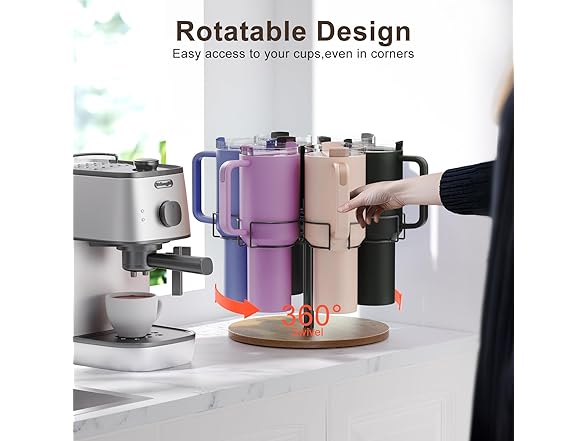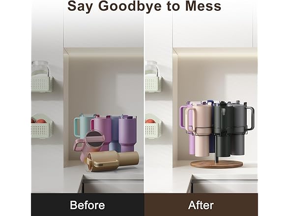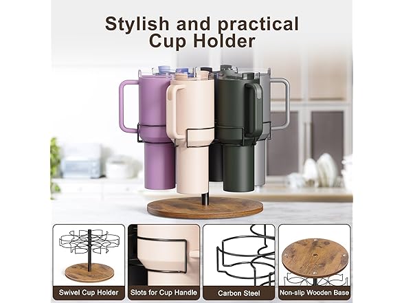 Yeuslor Water Bottle Organizer for Stanley 40 oz Tumbler with Handle, Rotatable Stanley Cup Organizer Holder, Kitchen Organizers and Storage for Stanley Cup Accessories, Wooden Base(Black)