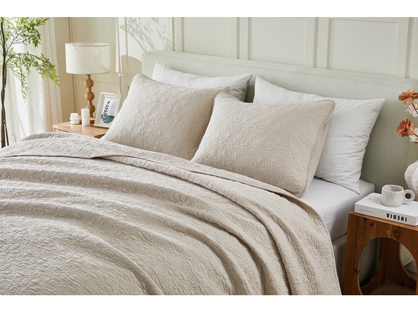 This cotton quilt will freshen up your bedroom decor with minimal effort. The stitched details will create a charming aesthetic that will match your decor. The soft feel of this cotton quilt will keep you comfortable while you sleep. The lightweight feel is perfect for use all year round. These quilts are easily machine washable, drop them in the washer & dryer, they'll get softer with each wash.
