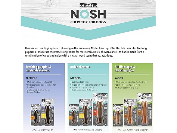 ZEUS Nosh Strong Dog Chew Bones, Dog Chew Toys for Aggressive Chewers, Long Lasting Chicken Flavor, Medium