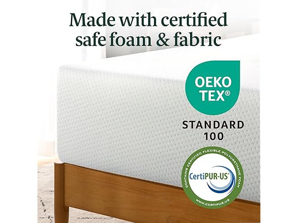 - CERTIFIED SAFE MATERIALS – Crafted from high-quality CertiPUR-US certified foam and wrapped with an OEKO-TEX certified mattress cover all produced without the use of harmful chemicals for safer, healthier sleep