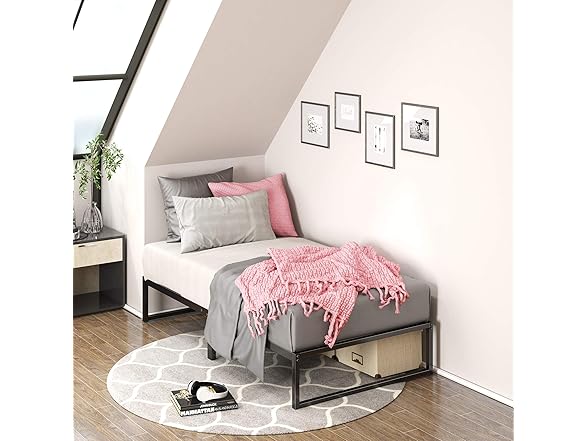 - MATTRESS SUPPORT FOR YOUR KIDS OR GUEST ROOM - With its sleek and compact silhouette, this durable and versatile metal frame looks great on its own or as part of a pair in your guest room or kids’ bedroom
