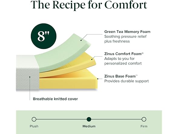This #1 best-selling memory foam mattress molds to your every curve to cradle your body—providing you with restful sleep without any uncomfortable sinking, sagging, or trouble turning in bed. Plus, premium natural infusions of green tea and natural charcoal keep your mattress fresh for years to come. Made with the finest CertiPUR-US® certified foams and wrapped in an OEKO-TEX® certified mattress cover, this top-notch mattress is built with durability, quality, and your ultimate comfort in mind to offer unparalleled value at an affordable price.