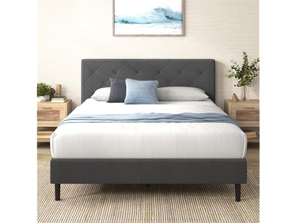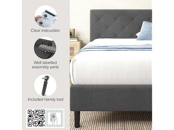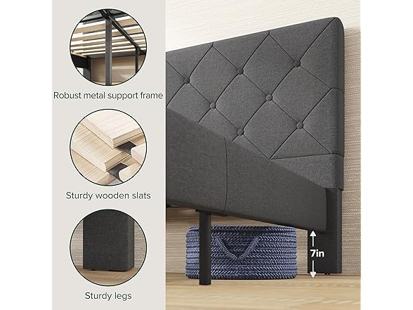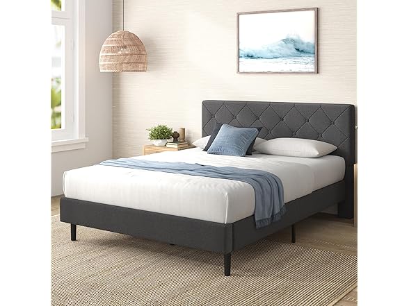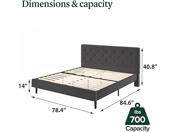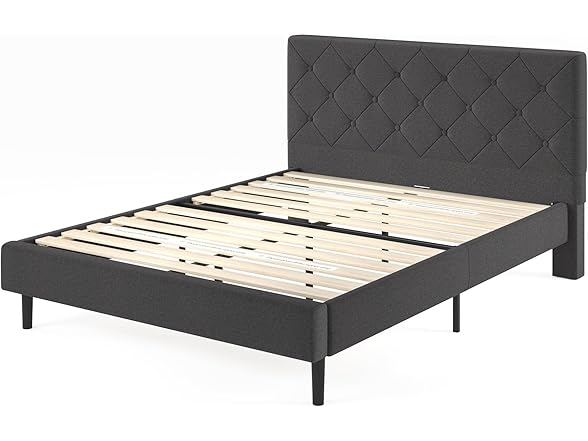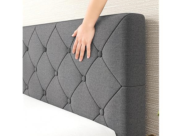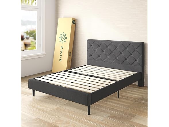 Zinus King Shalini Upholstered Platform Bed Frame with Headboard [New WonderBox(TM) Version], Wooden Slat Support, No Box Spring Needed, Easy Assembly, Eco Friendly Packaging, Dark Grey