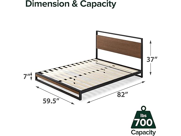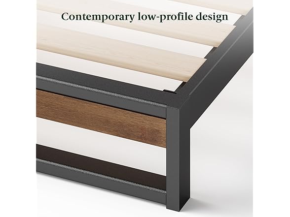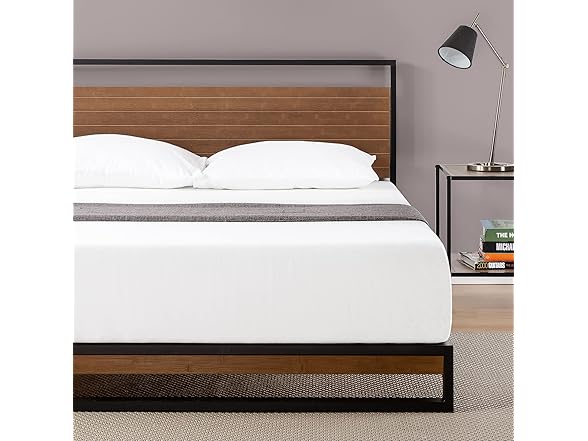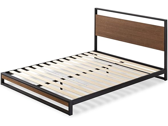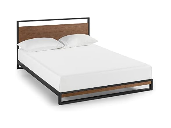 ZINUS Suzanne 37 Inch Metal and Wood Platform Bed Frame / Solid Wood & Steel Construction / No Box Spring Needed / Wood Slat Support / Easy Assembly, Chestnut Brown, Queen