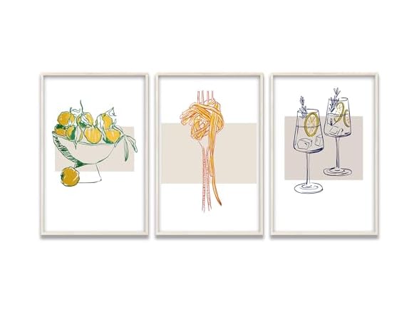 (1) ZNN&ZNC Italy Wall Art Set of 3 Vintage Italian Olive Green Landscape Poster Kitchen Canvas Prints French Country Picture Painting Living Room Bedroom Decor 12x16 in Unframed