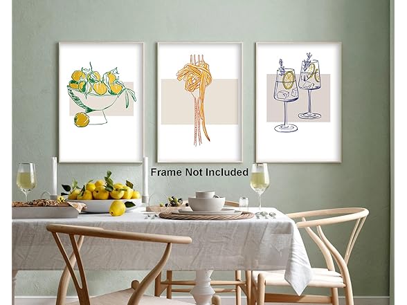 - Colorful Fruit Cocktail Wall Art - The lemon cocktail pasta is drawn in blue, green and yellow in a sketching style, which is very interesting and can add a breath of life to the room