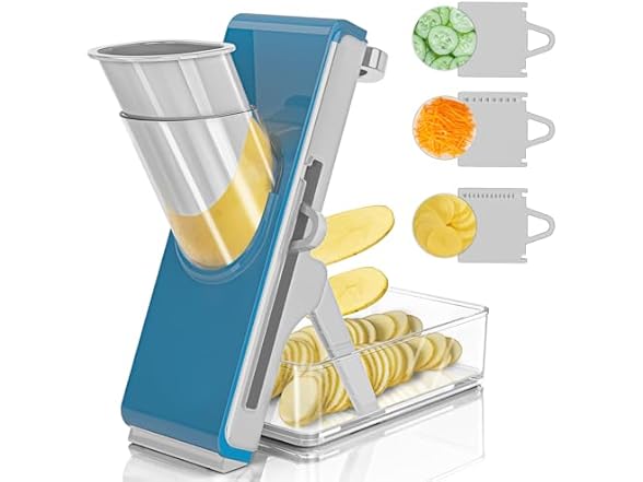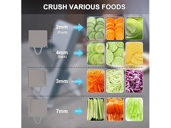- 3-IN-1 SLICING EXPERT - ① 2mm julienne blade for carrot ribbons ② 4mm slicer for potato chips ③ 8mm chopper for onions · Make potato chip slicer magic in 90 seconds flat (vs 6min hand-cutting) · Angled blade alignment prevents food jams · Beats 5 competing vegetable slicers in speed tests · Smokes my old rotary slicer vegetable cutter