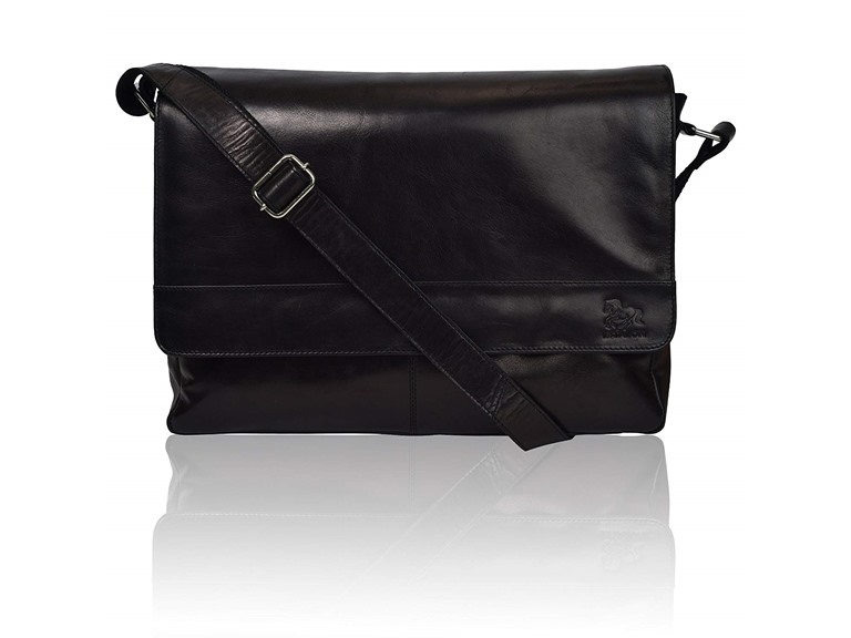 Estalon Leather Messenger Bag, Black