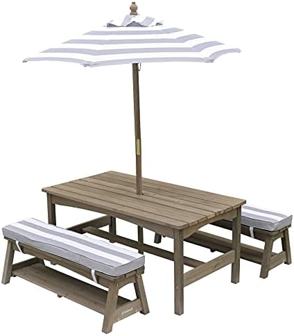 Relatively easy to assemble (took about 15mins), sturdy and good quality. Kids loved it, looks great outside. Fits four toddlers easily, but six if you squeeze. Better than tables where the bench is attached to the table, so that when they are bigger, they can just move the bench backwards rather than squeeze their legs inside!