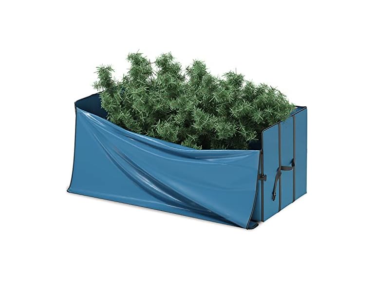 Placed out 9 1/2 foot tree in it, but the bag got punctured. Had to cover the holes with good old duck tape.